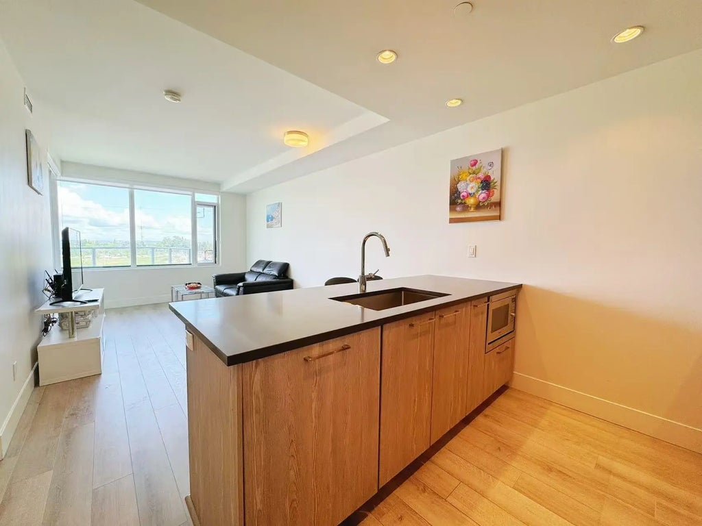 Welcome to The Gardens – CALLA! This modern concrete high-rise was completed in 2018 and is ideally situated at No. 5 Road and Steveston Highway in Richmond. This bright and well-maintained 1-bedroom + den, 1-bath home with NEW WASHER& DRYER, is located on the 7th floor with east-facing views overlooking open skies and mountain landscapes. Offering 651 sqft of well-designed living space, the unit features laminate hardwood flooring, stainless steel appliances, a gas cooktop, air conditioning, and 1 secure underground parking stall. Residents enjoy access to premium building amenities including a 6,000 sqft clubhouse with a full fitness centre, meeting room, and sports court. Unbeatable location—steps to Ironwood. OPEN HOUSE: SAT SUN 13th & 14th SEP 2-4 PM VR: https://realsee.ai/ReZZk6gX