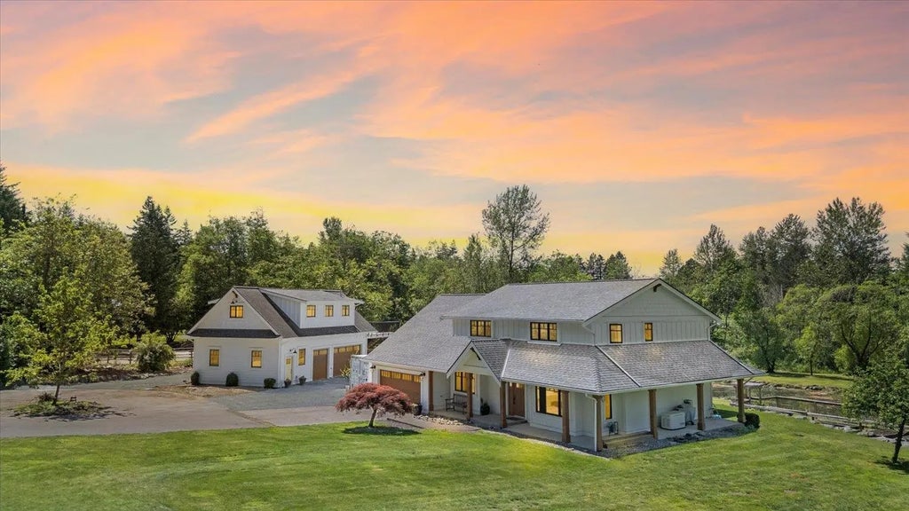 Stunning 2.5-acre property on Majuba Hill with panoramic views, privacy, and major income potential! Completely renovated 5-bed, 3-bath home plus a 2-bed, 1-bath carriage house (2017) sitting above a 3-bay 40x24 heated shop with office—ideal for toys, business, rental, or multi-generational living. Custom kitchens, modern finishes, engineered oak floors, new Roof/Windows/Siding/Furnace/Hot water tank (2017/18). 200A service + 100A shop sub-panel, plus a hardwired 200 Amp natural gas generator. Covered decks, fenced livestock area, horse paddock, chicken coop, pond (great for winter skating/summer canoeing), and vegetable gardens. Country feel just minutes from Yarrow’s shops and trails.