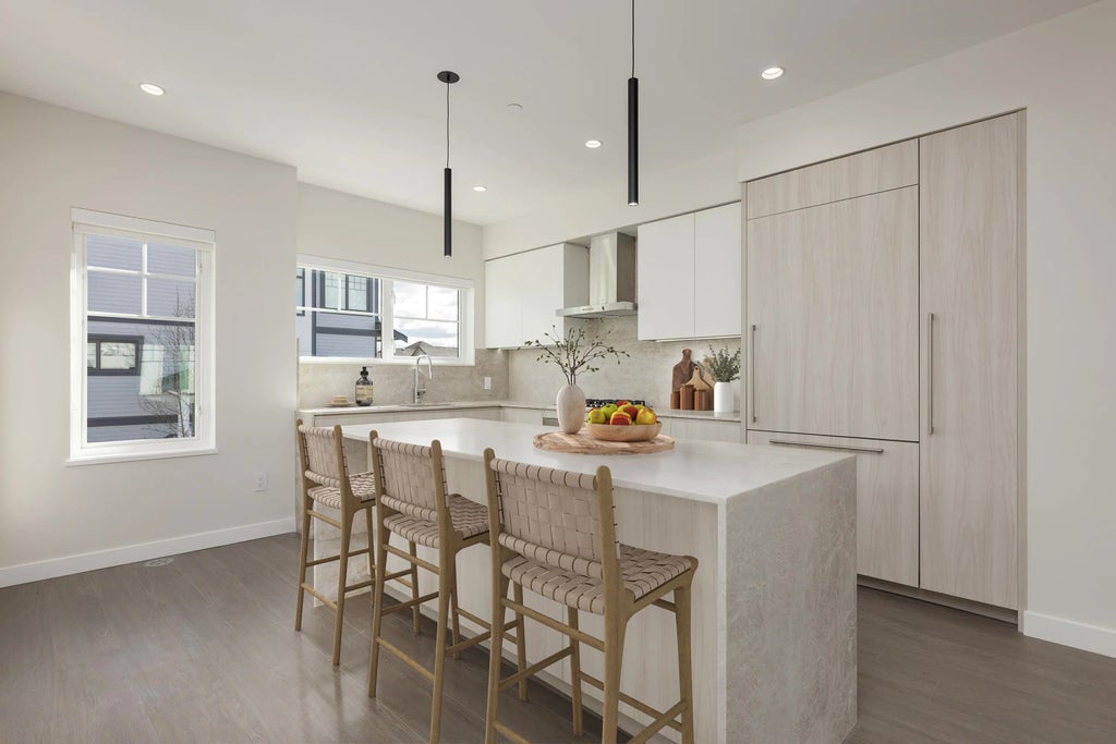 Craftsman inspired TH 100 1919 SF 4 bed 3.5 bath with a balcony and private yard in a well established community. Features include A/C, Laminate flooring throughout, on-demand hot water system, and overheight ceiling in living, kitchen and dining area with vaulted ceiling in the bedrooms make this home the perfect place to relax or entertain. Chef inspired kitchen features premium appliance package with 36" integrated Fulgor Milano fridge, 5-burner Fulgor Milano stove integrated with natural stone counter tops and back splash. Amenities include an outdoor pool, hot tub, gym, golf simulator, lounge, indoor Kids play room, games room, outdoor playground and sports court. 2 car private side-by-side garage.