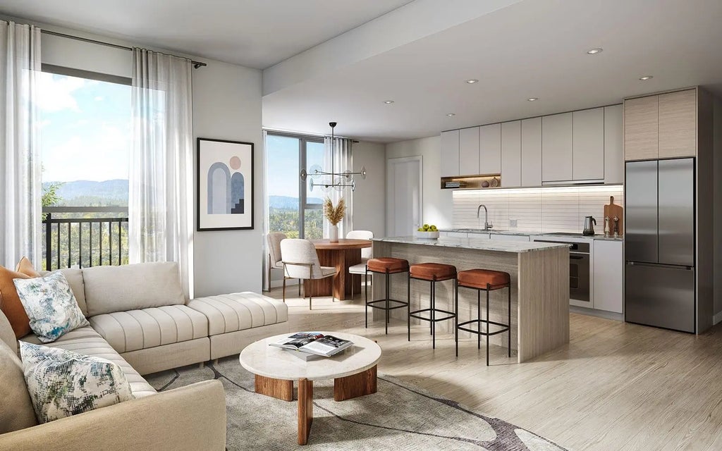 Welcome to Ashton! Fairborne's first chapter in the Lynn Creek Village community. Our E1 plan is on the sunny S/W exposure, corner suite with open concept plan with a large primary suite, separated bedrooms and over height ceilings. This premium collection of 140 residences is showcased over two 6-storey buildings capturing the spirit of North Shore living. Enjoy Samsung smart technology appliance package, quartz countertops, laminate wood flooring throughout. Heating & Cooling provided by forced air. Amenities include a social lounge, bike repair & wash, pet wash, meeting rooms. Bordered by the upcoming expansion of Marie Place Park and new greenbelt. Walking distance to many great restaurants, shops & breweries & transit. 5% Deposit for a limited time!