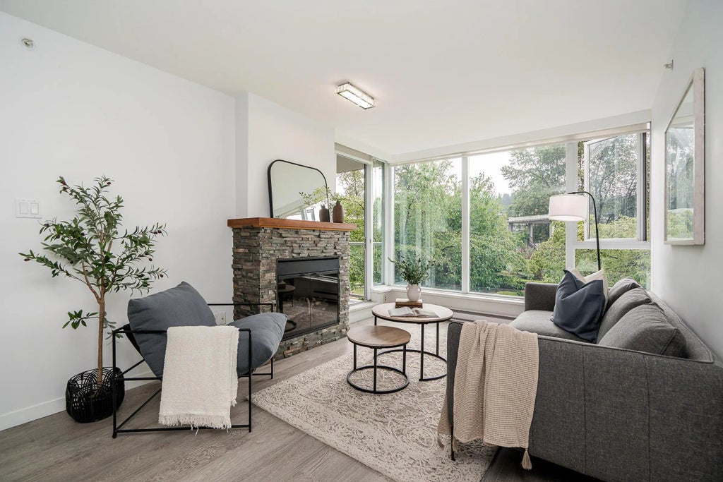 Welcome to SAHALEE in Port Moody! This beautifully updated 2 bedroom, 2 bathroom home offers 790 sq ft of bright, southwest-facing living space - plus TWO rare parking stalls. The open-concept layout features a sleek kitchen with quartz counters, new fridge, and peninsula seating, flowing seamlessly into the dining and living areas. Floor-to-ceiling windows and a private balcony showcase lush greenery and courtyard views. Bedrooms are generously sized and thoughtfully separated for privacy; the primary includes a 4-piece ensuite with soaker tub. Enjoy updated counters in both bathrooms and laminate flooring throughout. The 15,000 sq ft of Canoe Club has incredible amenities - all in an unbeatable location just steps to Suter Brook, SkyTrain, WCE, Rocky Point, trails, and Brewers Row.