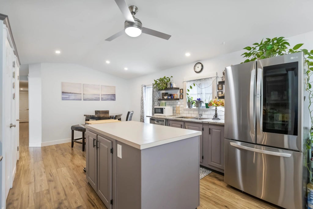 Welcome to Nicomen Village! This beautifully renovated 1,636 sq. ft. 3 bed, 2 bath home sits in one of Mission’s most sought-after parks. Updates include a stunning modern kitchen, refreshed bathrooms, new windows, Central A/C, PEX plumbing, wiring, drywall, lighting, new CSA, and more! The hot water tank is only 2 years old. The bright, oversized kitchen offers abundant storage, while the spacious entry features an office nook. Relax in the large living room with cozy propane fireplace or retreat to the primary suite with elegant ensuite and walk-in shower. Outside, enjoy the sunny sundeck, firepit area, and detached work shed. Pad rent only $430/month.