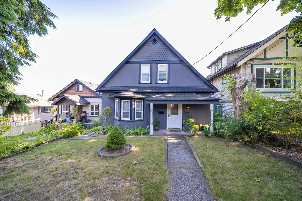 Full of character and modern updates, this charming 1909 family home offers 5 bedrooms and 2.5 bathrooms. The main floor features a bright open layout, an updated kitchen with stainless steel appliances, stylish tile finishes, a spacious family room, and a large primary bedroom with ensuite. Upstairs boasts 3 generous bedrooms and a refreshed bathroom. The walk-out basement offers a huge rec room, flexroom, and bath—easily suited for income or extended family. Enjoy a great backyard in a desirable neighborhood, just steps to Richard McBride Elementary. A perfect blend of charm, space, and location! Open house Oct 12 (Sun)2-4pm.