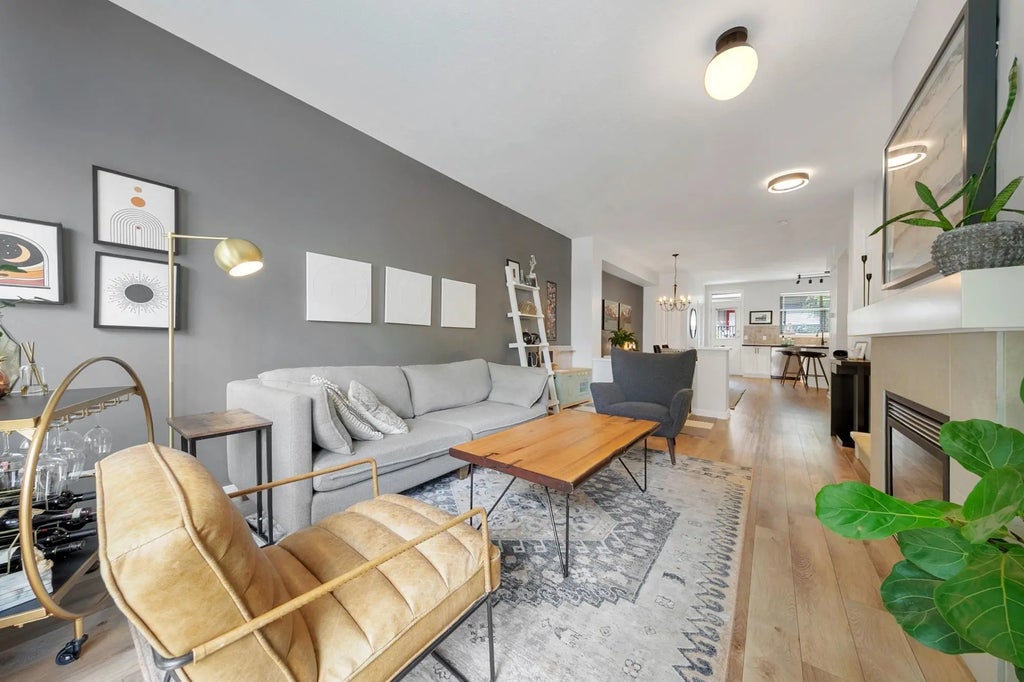 Beautifully designed 1,728 sq ft, 4-bed, 2.5-bath townhome blends contemporary living with outdoor adventure. Set steps from biking & hiking trails with a stunning mountain backdrop. The open-concept main floor features a gourmet kitchen with stone countertops & stainless steel appliances, flowing into a bright living & dining space ideal for entertaining. Enjoy two balconies, one west-facing off the living room & another off the kitchen, perfect for BBQs, as well as a ground-level patio. The primary suite offers a walk-through closet. 2 additional bedrooms & a renovated bath complete the upper floor. Downstairs, a spacious garage provides storage, alongside a versatile flex room ideal for a home office, playroom, guest space. Prime school catchment & location for a growing family!