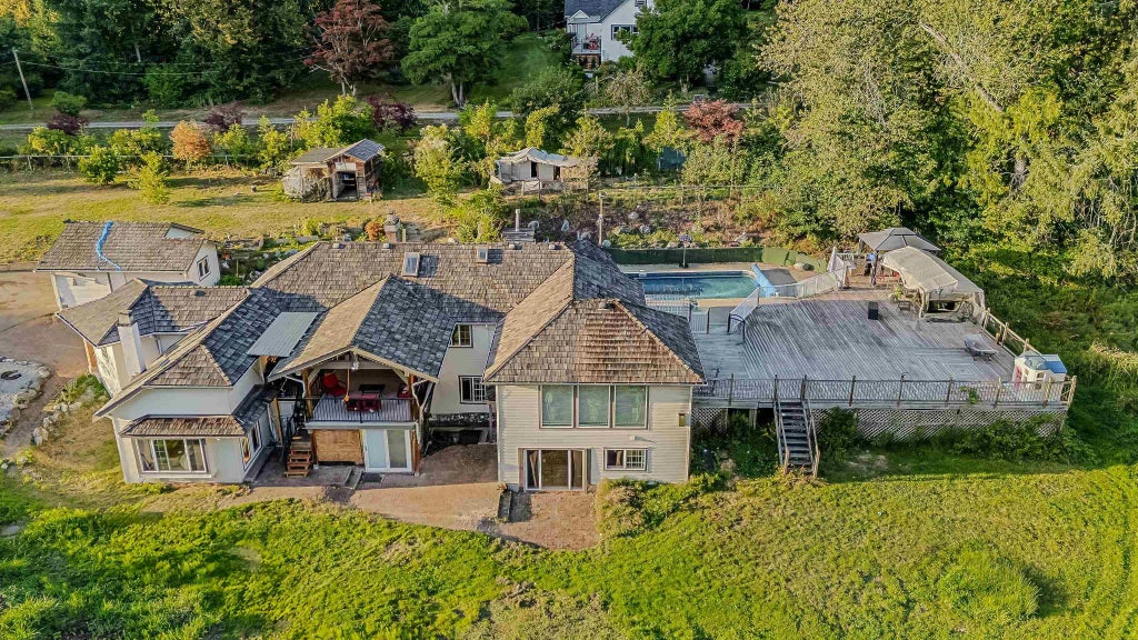 Discover a rare opportunity to own a private, 5.07-acre lot featuring a spacious home, 3,791 sqft, a beautiful in-ground pool, hot tub, and expansive outdoor deck. Inside, enjoy geothermal heated tile flooring, a large living room with a floor-to-ceiling rock gas fireplace, a custom kitchen with marble counters, maple cabinetry, and high-end appliances. The main floor offers 4 spacious bdrms, including a primary suite with fireplace, plus hardwood floors throughout. One bedroom includes a custom treehouse with a playroom loft! The finished basement boasts a media/living room, kitchen, 2 bdrms, and a den. Skylights, sundecks, a detached garage, and shed complete this family home. A must-see! Own this spacious home set on an expansive lot, offering the perfect space and location.