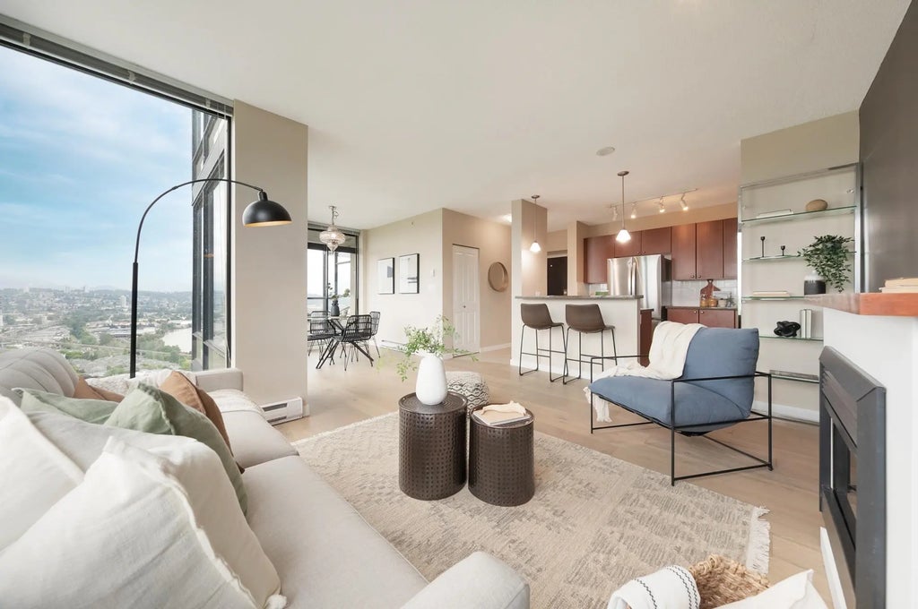 Sub-Penthouse living The Residences of Victoria Hill! With 1,157 sf. thoughtfully designed space, this home blends comfort & functionality with generous rooms, welcoming primary suite with walk-in closet & private ensuite. Sweeping views of the Fraser River & mountains from every window, or enjoy your covered balcony with morning coffee. Updates include engineered hardwood floors, stainless steel appliances & fresh paint, adding warmth throughout. Victoria Hill offers more than a home—it’s a lifestyle. Amenities include fitness centre, outdoor pool, hot tub, sauna, lounges & bike storage. 2 parking stalls with EV charging & large storage locker. Steps to parks, trails, transit, shops & the heart of New Westminster & 30 mins or less to Vancouver. Open House Sunday Sept 28, 2-4pm