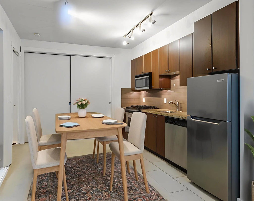 2 parking stalls! Move-In Ready & Immaculately Maintained! This spacious 1-bedroom condo in the heart of UBC’s highly sought-after campus community. Featuring soaring ceilings and an open-concept layout. Step out onto your private southwest-facing patio—perfect for relaxing, entertaining, or enjoying al fresco dining. Upgrades include a brand-new refrigerator and laundry machines. This quiet, well-managed, and secure building is ideal for students, professionals, or savvy investors. Pet-friendly (1 dog or 1 cat allowed). 2 parking + locker. Prepaid 99-year lease with UBC until 2103. Some photos have been virtually staged.