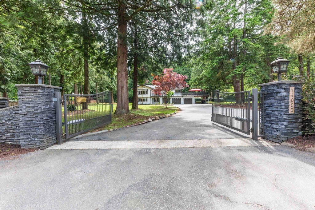 Discover this prestigious Elgin neighborhood of South Surrey/White Rock. This executive gated 5-bed, 3-bath home sits on a 1.09-acre lot. Fully renovated inside and out in 2025, it showcases a modern design with wide driveway, 6+ car parking, custom kitchen with brand new stainless appliances, striking fireplaces, wood floors, and open layout leading to a 500 sqft deck. The lower floor with office, 2 bedrooms, rec room, and patio can easily be converted into a rental suite as a mortgage helper. With over an acre of land, the property also offers significant potential (buyers to confirm with City). Close to Crescent Beach, top schools, golf, and parks—blending lifestyle and smart investment.