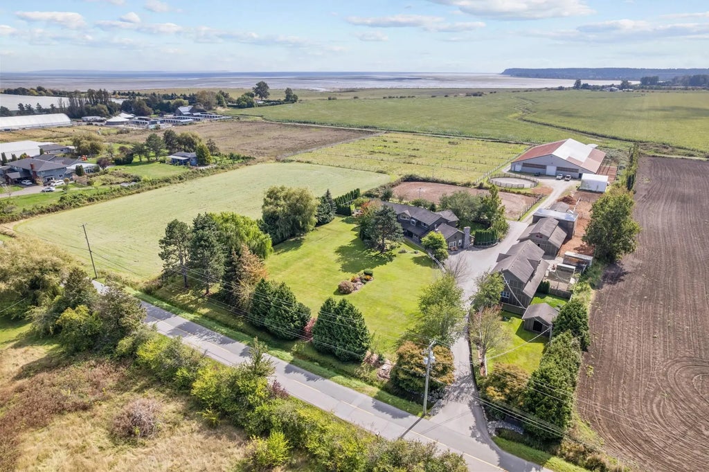 Country living 30 minutes from Vancouver and close to countless amenities. This beautifully landscaped and irrigated 10-acre property boasts a 6 BR home with panoramic views of Boundary Bay and surrounding farmland, minutes to Boundary Bay waterside trails. Perfect for Equestrians offering a large indoor arena with GGT footing and 10 in/out stalls with heated tackroom. Round pen, outdoor riding arena, 6 fenced grass paddocks, hay field, an additional 7-stall barn with large workshop plus a detached, 4-car garage with 2 BR suite above and a fenced yard. Several out buildings including a chicken coop with run. Whether you are seeking a peaceful countryside lifestyle or a functional equestrian property, this home delivers elegance, privacy, functionality and natural beauty in perfect harmony.