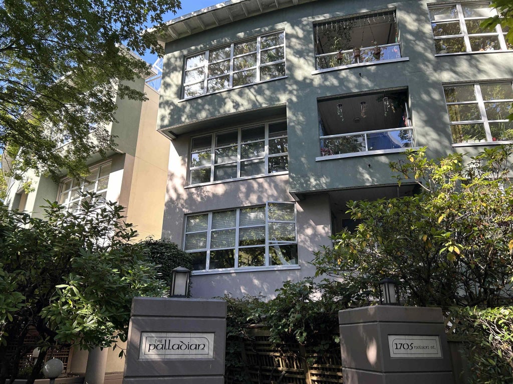 THE PALLADIAN IN A PRIME WEST END LOCATION. STEPS TO VIBRANT DENMAN STREET, STANLEY PARK ENGLISH BAYBEACH AVENUE RESTAURANTS AND SHOPPING. SOUTH FACING SPACIOUS 758 SQ. FT. ONE BED & DEN WITH A SOUTH COVERED BALCONY FOR YEAR ROUND USE. INSUITE LAUNDRY AND 1 PARKING SPACE. WALK AND BIKE EVERYWHERE WITH 99 WALK SCORE ! ENJOY THE TREED STREETS WITH ONLY THE CHARM AND CONVENIENCE THAT THE WEST END WEST OF DENMAN OFFERS ! ** VIEW BY APPOINTMENT **