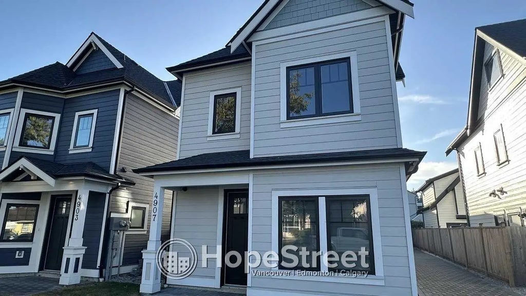 This 2,800 sq. ft. three-story home blends modern design with premium finishes. The exterior boasts dark blue siding with light trim, bay windows, and a double garage. Inside, wide-plank hardwood floors, neutral tones, and recessed lighting enhance the open layout. The gourmet kitchen features white shaker cabinets, quartz counters, mosaic backsplash, and high-end stainless appliances. Three bedrooms are on the second floor, with a private loft-style suite and ensuite above. Bathrooms showcase quartz vanities, frameless showers, and sleek black fixtures. A main-floor office offers flex space. Amenities include central vac, hydronic heating, dual-shade blinds, and water included. Walk to Ladner Village, shops, parks, schools, and enjoy easy access to Highway 17A, transit, and BC Ferries.