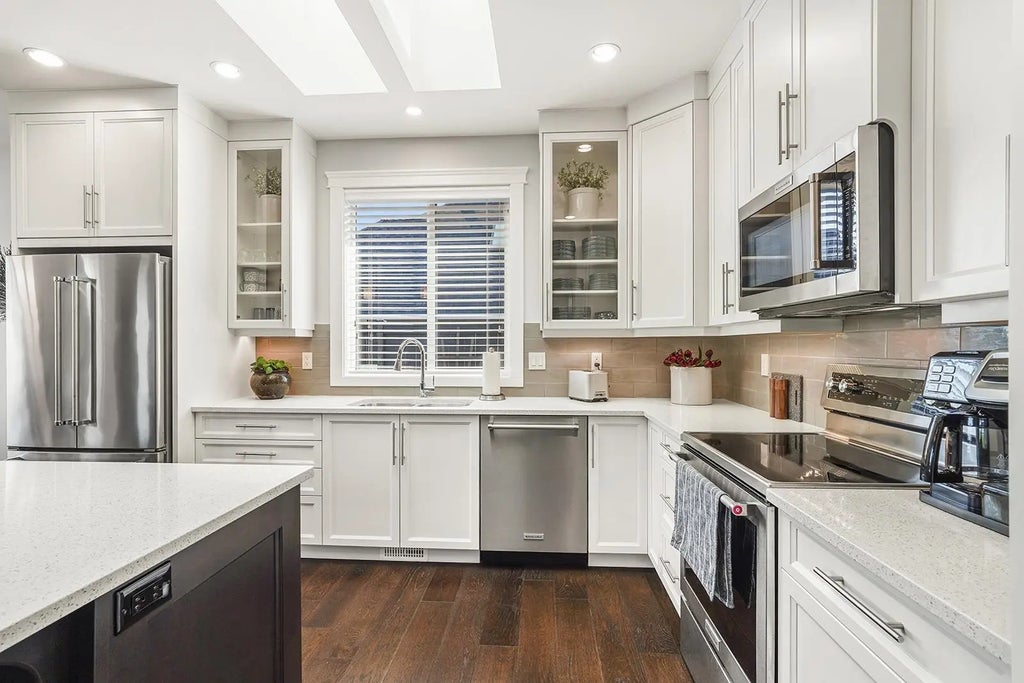 Cedar Ridge Estates Rancher. 3 bed / 2 bath. Beautifully landscaped lot with a spacious one-level layout, private backyard, skylights, oversized windows, wood floors, and transoms above doors. Ideally located—walk to Wembley Mall, minutes from downtown, schools, transit, golf, and the beach. The open-concept Kitchen, Living, and Dining areas feature varied ceiling heights and abundant glass. Living Room includes a natural gas fireplace and coffered ceiling. The deluxe Kitchen offers quartz counters, stainless appliances, and a large island. A glass door from the Dining Room opens to an east-facing patio for outdoor dining and entertaining. The Primary Suite boasts over height ceiling, walk-in closet, and 3-pc ensuite. Updated lighting, Newly painted throughout.