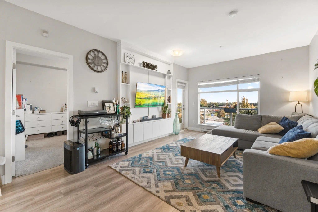 Welcome to Unit 515 at The Muse – a spacious 2 bed, 2 bath home offering 915 sq ft of open-concept living! This well-designed upper-floor unit features an open floorplan, oversized bedrooms, and large windows that flood the space with natural light. The modern kitchen flows seamlessly into the living and dining areas, making it perfect for entertaining or relaxing in style. Situated in a central location, you're just steps from grocery stores, schools, parks, restaurants, and public transit – including easy access to the SkyTrain for commuting. The Muse is a well-maintained, mixed-use concrete building with great amenities and secure parking. Don’t miss your chance to view this move-in ready home!