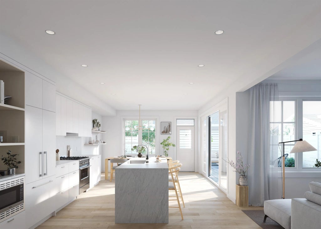 Harrow Estate Cottages, Phase 1 ~ This 4-bedroom estate cottage with a primary bedroom on the main floor + a second primary bedroom upstairs is tucked into a quiet neighbourhood steps from farmers' fields, a short walk to the beach & the Market Square. Painted in harvest-inspired hues, this classic farmhouses feature generous covered front porches, tranquil backyard patios, walk-in pantries, a two-car garage & a heat pump for year round heating & cooling. The kitchen is the heart & designed for the joy of sharing food. With Fisher & Paykel appliances, large quartz centre island with waterfall edge & behind stylish barn doors - a spacious walk-in pantry with shelving, storage systems & convenient working counter. Move in today!