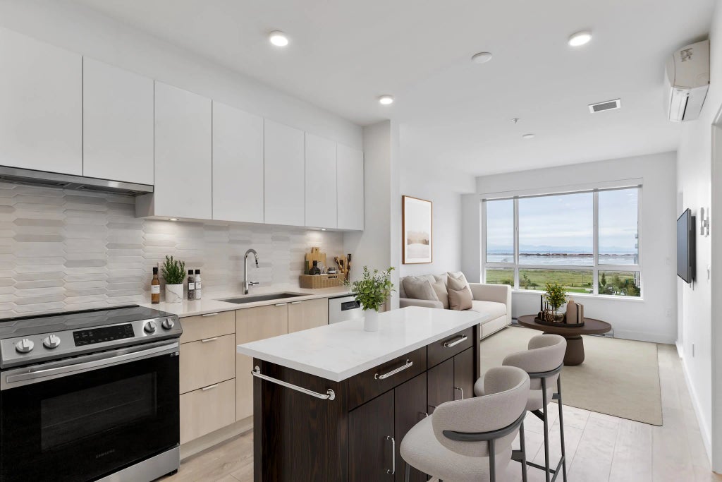Stunning Waterfront one bedroom plus den at Salt & Meadow by Aquilini Developments! Enjoy breathtaking sunsets and sweeping ocean views from your west-facing balcony overlooking the Strait of Georgia. This sleek, modern home features stainless steel appliances, laminate flooring, and bonus upgraded air conditioning. Resort-style Beachhouse amenities include an outdoor pool, hot tub, BBQ area, gym, yoga room, work labs, and kids playroom. Fabulous location nearby Tsawwassen Mills shopping and restaurants with easy access to Ferry terminal. Includes 1 parking stall and 1 storage locker.