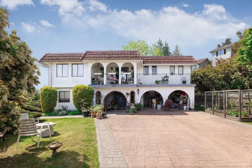 This unique home blends charm, space, and stunning views. The architecture embodies a Spanish style with arched accents throughout, stucco exterior, and a clay tile mansard roof. The main living space offers a warm, inviting feel with large, view-facing windows and a wood-burning fireplace. The kitchen is spacious and functional, with an adjoining breakfast area. The main floor also features three of the home's bedrooms, a dining area, and decks off the living space. The lower level includes a large foyer, a separate family room with a natural gas fireplace, an additional bedroom, large storage room, and laundry room. Other features include a double carport and enclosed storage area, established vegetable gardens, and plenty of room to expand. Lots of privacy and unbeatable location!