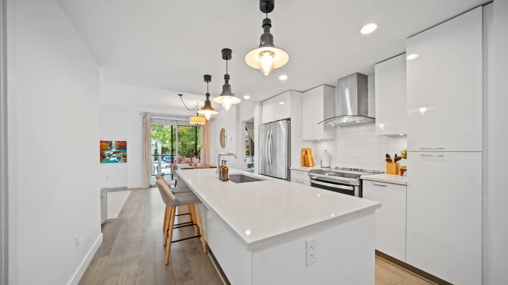 The best of the city, and the outdoors – welcome to this rarely available 3-bed, 2-bath corner home at The Shore in North Vancouver’s Harbourside community. This bright and functional floorplan offers over 1,000 sq ft of well-designed interior living, a spacious kitchen, and large windows that allows an abundance of natural light in throughout. The primary bedroom includes a walk-through closet and ensuite, the secondary bedrooms offer flexibility for families or a home office. As a bonus: two large, covered patios extending your living space outdoors, perfect for entertaining. Located steps from the trails and local shops, with easy access to Lonsdale, transit and HWY 1. The Shore is a well-maintained complex with gym, yoga studio, and playground. This is the home you’ve been waiting for!
