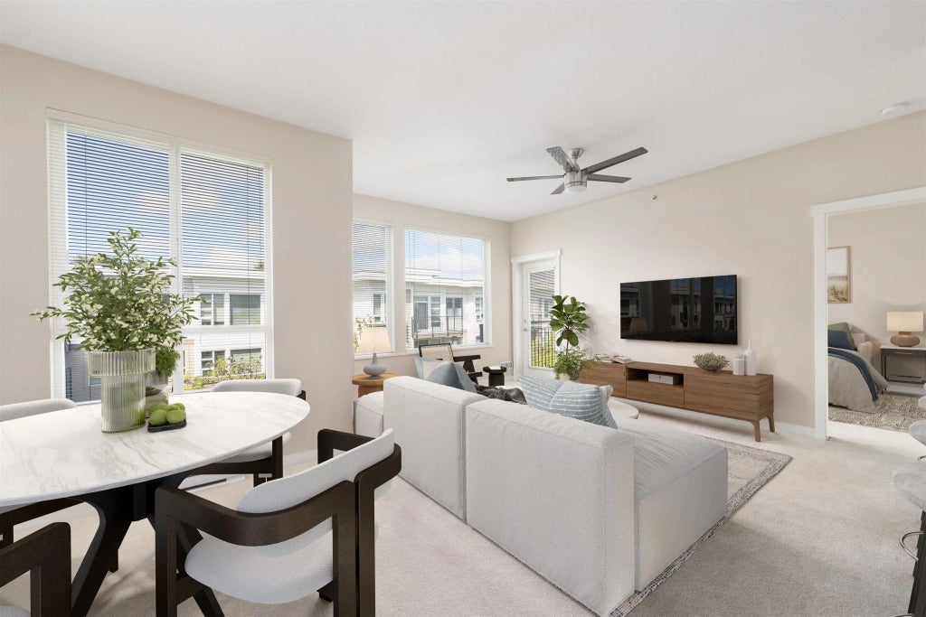 Welcome to Cambridge Park by Polygon! This bright and spacious 2 bed, 2 bath home offers 887 SF of open-concept living with 9’ ceilings, a generous living/dining area, and a modern kitchen with gas range and s/s appliances. Bedrooms are thoughtfully separated for privacy, including a spacious primary with walk-in closet and 4-pc ensuite. Enjoy year-round outdoor living on the 74 SF covered balcony. Includes 2 parking stalls and 1 locker. Conveniently located near parks, shopping, and transit in the heart of Richmond.
