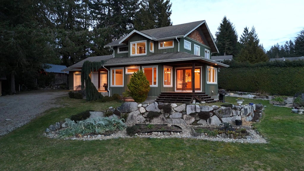 Watch the cruise ships & sunsets from this exclusive view acreage in Davis Bay. Sweeping southwesterly aspect over Strait of Georgia from both floors in a well built custom home. Beautiful edge-grain fir and stone flooring throughout leading into a lovely gourmet kitchen outfit with a dual Wolf range & vent, granite counters and large island. Entertain in the open concept with living and dining areas positioned to enjoy views. The large gently sloping property has a greenhouse and irrigation allowing for a gardener's imagination yet still enjoys privacy in this fenced property. 4 bedroom main home with a 2 bedroom old timer cottage with recent work on the exterior allows for extended family or revenue helper. Subdivision potential makes for a great investment and value.