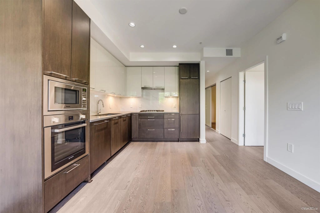 Convenience and private. This 1 bedroom + Den offers an excellent layout with a private patio and convenient street access. Park right outside your home! Large primary bedroom with 9' ceilings and a bonus supersized den that can be used as a bedroom or office/hobby space. Cook in air conditioned comfort in your kitchen, offering loads of storage and SS appliances. Comes with 1 underground parking stall. Open House 11 Oct Sat 2-4.
