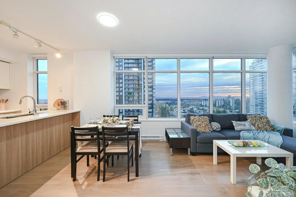 Live in the sky! This 910sqft bright corner sweet home in the heart of Metrotown offers stunning southern views, an open-concept layout, and a sleek, modern kitchen. Features a luxurious master suite, premium building amenities (fitness center, lounge), and includes 1 parking + 1 storage.