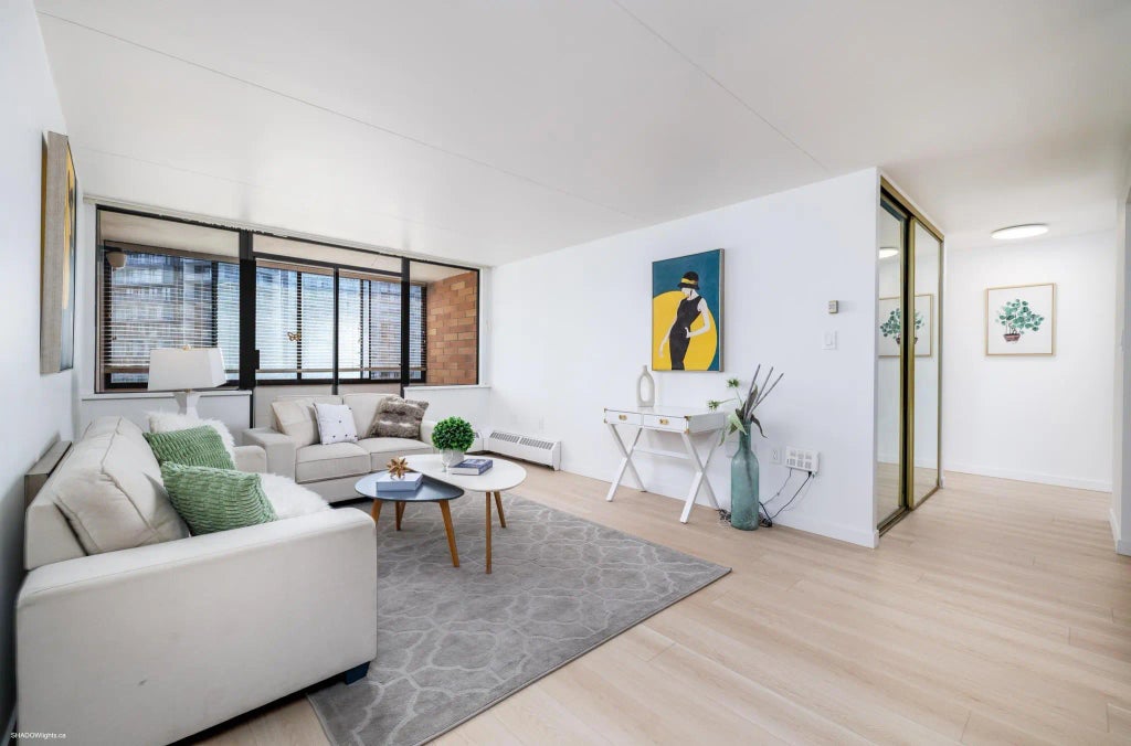 Refined Living in the Heart of Richmond! Fully renovated 2BR+2BATH residence offers 1134 sf of impeccably curated interiors in a concrete high-rise + a bright 64sf enclosed balcony that functions beautifully as a reading nook/studio/morning coffee retreat. East-facing and filled w/natural light, the home showcases over $62k in reno: engineered HW floors throughout/sleek quartz countertops/soft-close cabinetry/a contemporary tile backsplash/new vanities/fresh paint, and more. Open-concept dining & living area flows effortlessly, while both BR can accommodate king-sized beds w/ room to spare. Amenities include a serene outdoor pool/gym/ residents’ lounge, updated shared laundry facility. The strata fee covers heat + hot water + city water & sewer. Incl 1 covered parking & 1 storage locker.