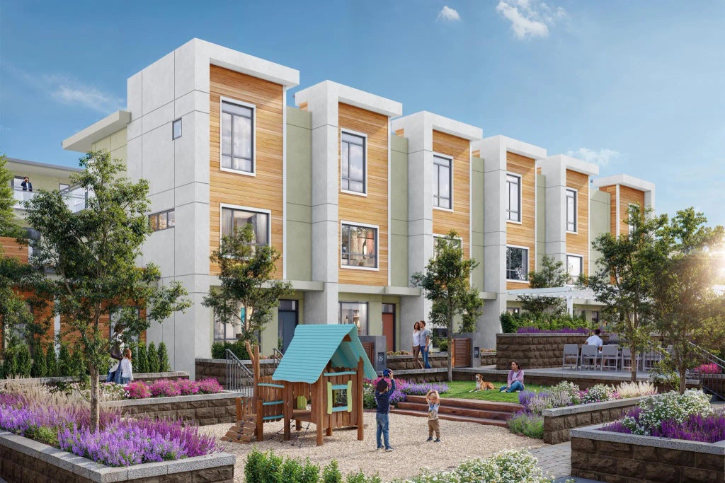 Welcome to THE GROVE, a collection of 49 contemporary townhomes coming to the ever-expanding Burquitlam neighbourhood. Inspired by the tradition of single-family living, homes are custom designed to feature open-concept interiors that look out onto lush outdoor courtyards. This corner, D plan offers 2 bedrooms upstairs with a convenient den plus a spacious, rooftop patio. Enjoy the convenience of a secured underground parking and urban amenities at your fingertips. Ready Summer 2026, The Grove is the perfect place to call home. Our Presentation Centre is now open Saturday and Sunday 12-4pm at Unit 200 - 3355 North Road, Burnaby.