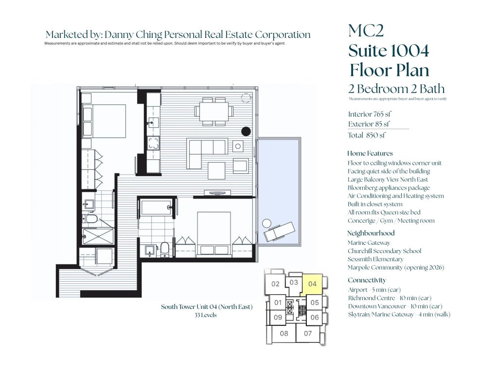 MC2 North by Intracorp. This bright NE corner 2 BED 2 BATH contemporary home offers floor to ceiling full width windows in your open concept living, dining & kitchen. Stay comfortable w/Jaga Briza cooling & heating or relax on your large covered balcony. Gourmet kitchen w/Bloomberg appliances, Caesarstone counters & marble backsplash. Armony Cucine cabs thru-out inc. custom closet systems in your non adjacent bedrooms both w/spa-inspired ensuites! Amenities inc. concierge, gym, meeting room. Minutes to Richmond & STEPS to Canada Line Skytrain, T & T, Winners, Cineplex, Starbucks, Shoppers, dining & more! 1 parking. 1 locker. PUBLIC OPEN Oct 19 2-4pm