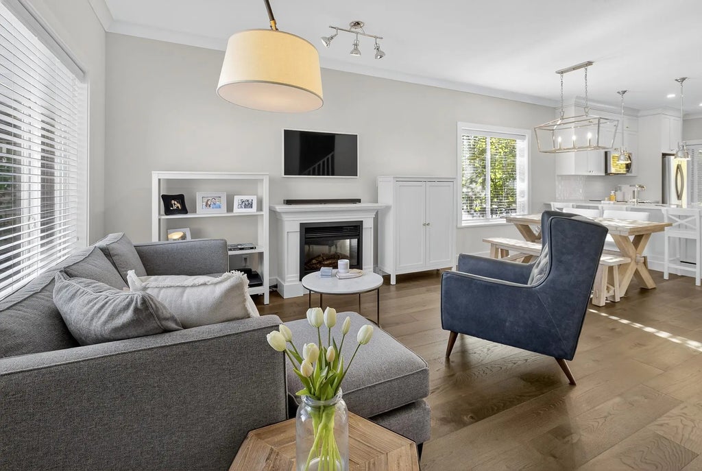 Stunning upgrades in this 2-bed, 2-bath townhome at Encore At Hillcrest. Living room w/eco-friendly 7.5’ engineered hardwood, custom trim, and a cozy fireplace. Gourmet kitchen upgraded with Merit cabinetry, Silestone counters, Bosch panel-ready dishwasher and Restoration Hardware lighting. The adjoining family room offers space to relax or entertain. Upstairs, the primary bedroom features a spa-inspired ensuite with Kohler fixtures and a walk-in closet by Westcoast Closets. Fenced yard with private patio for BBQ. Double garage includes custom storage by The Garage Guru plus extra parking. Amenities include; media room, playroom, exercise room, clubhouse. Close to parks, schools, golf, shopping, and dining—this home blends style and convenience. Openhouse Sat Oct. 11, Noon - 1:30pm