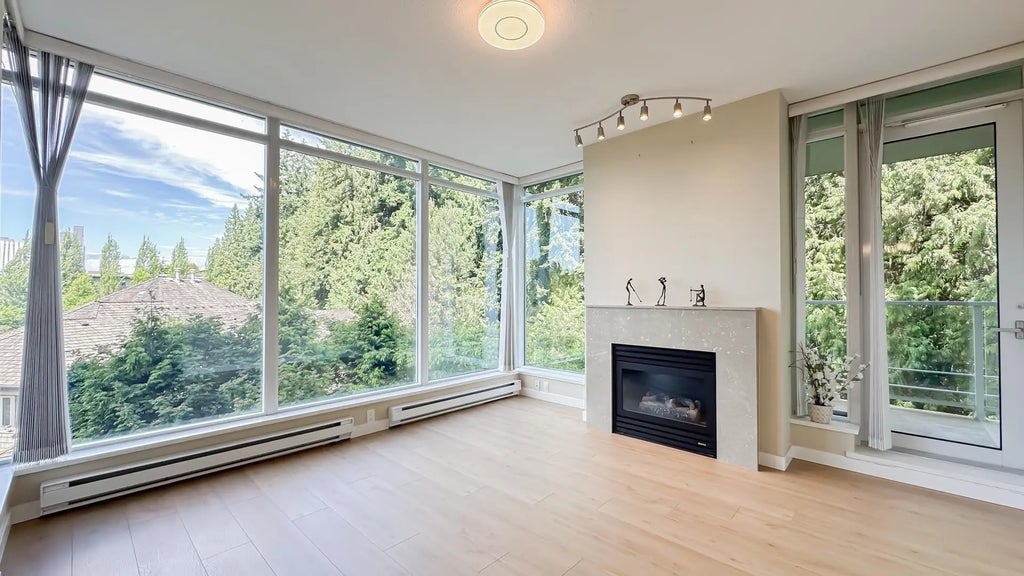 Amazing north-east CORNER unit at Promontory built by award winning Polygon. 2 bedroom + den + 2 bath with functional layout. Open concept kitchen with stainless steel appliances and granite countertops. Bright dinning and living area lead to 2 x good sized balconies with amazing view of campus, mountain and greenbelt. The home features brand new laminate flooring, floor to ceiling windows, gas fireplace, a large den that can be used as the 3rd bedroom, plus 2 x side by side parking stalls. Amenities include exercise room, lounge and concierge. Steps to the UBC campus, Thunderbird Stadium, University Hill Secondary, Wesbrook Village, Botanical Gardens, golf course, bus transits and more.