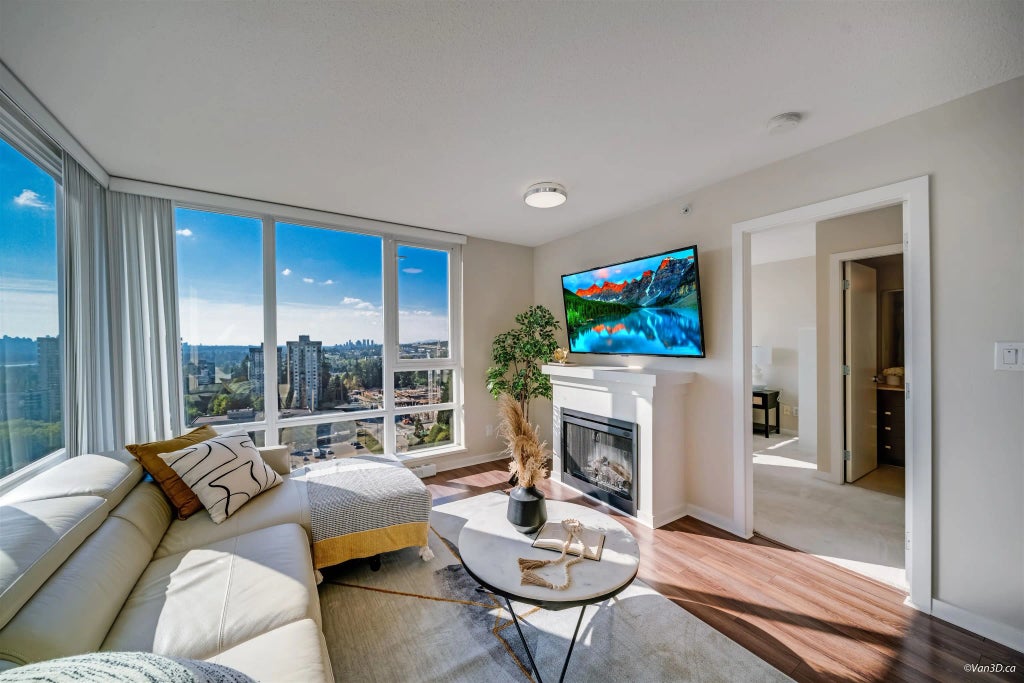 Prime Location! This bright SW-facing 2 Bed 2 Bath 2 Parking corner home at SILHOUETTE offers 955 SF of functional living with panoramic city & mountain views. Excellent layout with bedrooms on opposite sides for privacy. Upgraded with new LG stainless steel appliances, washer/dryer, and blinds. Rare find with 2 parking stalls + 1 storage locker! Floor-to-ceiling windows and a private balcony flood the space with natural light. Amenities include a gym, guest suites, rooftop garden & party room. Steps to SkyTrain, Save-On-Foods, Walmart, Shoppers, BC Liquor, Cameron Library, schools & more. Easy access to SFU & Hwy. A perfect blend of comfort, convenience & value! Open House Oct. 11 Sat 2-4PM