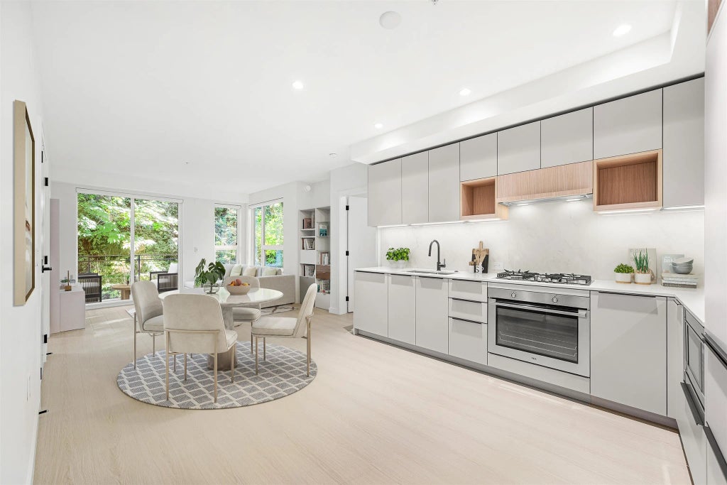 Refined and expertly crafted, this BRAND NEW fully accessible 2 Bed + Den corner home at Hue by Marcon offers privacy, light, and quiet tranquility. Overlooking protected greenspace and nestled beside a forested hillside, this bright end unit features a spacious layout with floor to ceiling windows and peaceful courtyard views. Premium finishes include a paneled Liebherr fridge, Fulgor Milano dishwasher, AEG gas cooktop, and oversized wide bathrooms. Exceptional amenities feature a rooftop patio with stunning mountain and inlet views, complete with BBQs, firepits, and a communal garden, plus a fitness centre, co-working lounge, children’s play area, dog wash station, EV-accessible parking, and more - all in the heart of vibrant Port Moody.