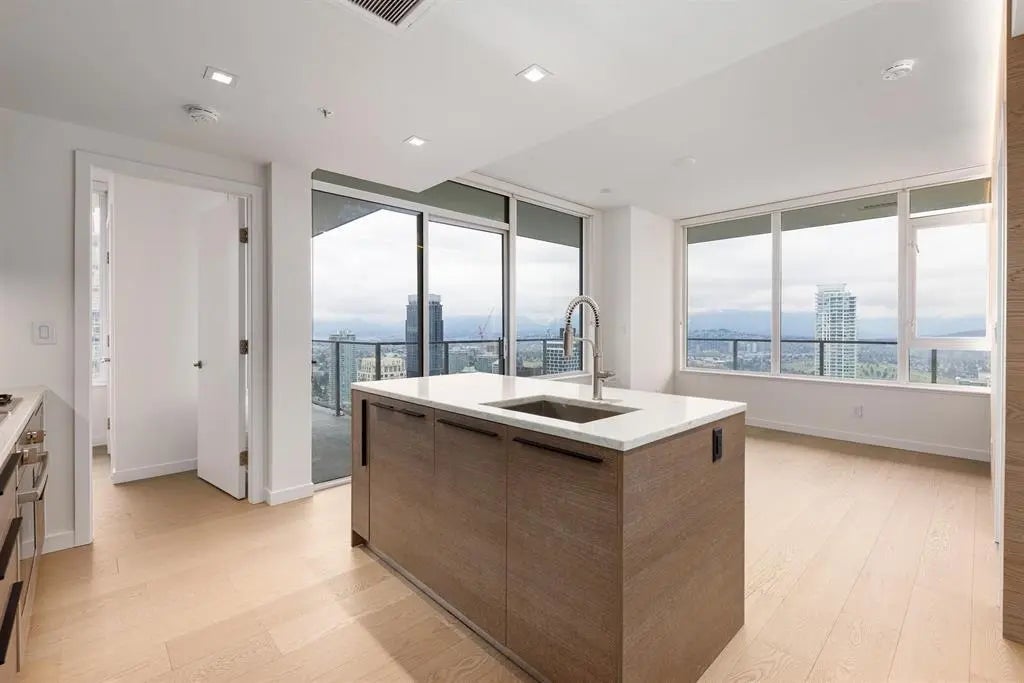 Welcome home to the building name, situated in the highly sought-after neighbourhood. Welcome home to Gold House, situated in the sought-after Metrotown area. This open-concept condo features wide-plank laminate flooring, 9ft ceilings, and windows that allow ample light to flow throughout. The balcony overlooks 180-degree views of the city skyline and the North Shore mountains. The gourmet kitchen comes equipped with Italian cabinetry, integrated Bosch appliances, quartz countertops, and an island. Residents of Gold House have access to 30,000 sq ft of amenities, including a fitness centre, lounge, spacious outdoor terrace, and concierge services. Located in Burnaby, a stone’s throw from Metrotown, this home offers unbeatable access to shopping, entertainment, and dining options.