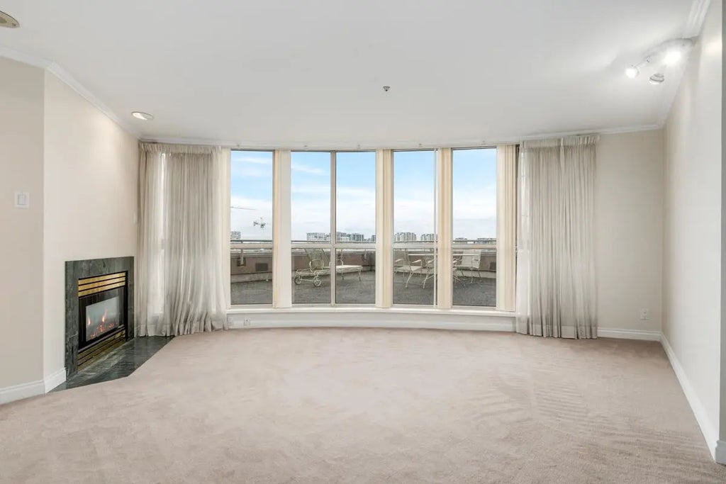 Rarely Available, Renovated 2 bedroom 1 bath condo in the center of the Richmond, brand new flooring in the living room and master bedroom. High celling, oval style living room offers a unbeatable city mountain view. Functional layout with a huge outdoor patio. 1 secured Parking. Just steps away from Richmond Center Mall, Bank, Hospital, library, Park, restaurants and public transportation. The "Anderson Building's" rare 25 unit condos with solid concrete & steel construction. Only 4 units per floor! 735 Sq. Ft. interior plus a 1154 Sq. Ft. outdoor Patio. **Any storage locker and parking stall measurement/size to be verified by prospective tenants if applicable.**