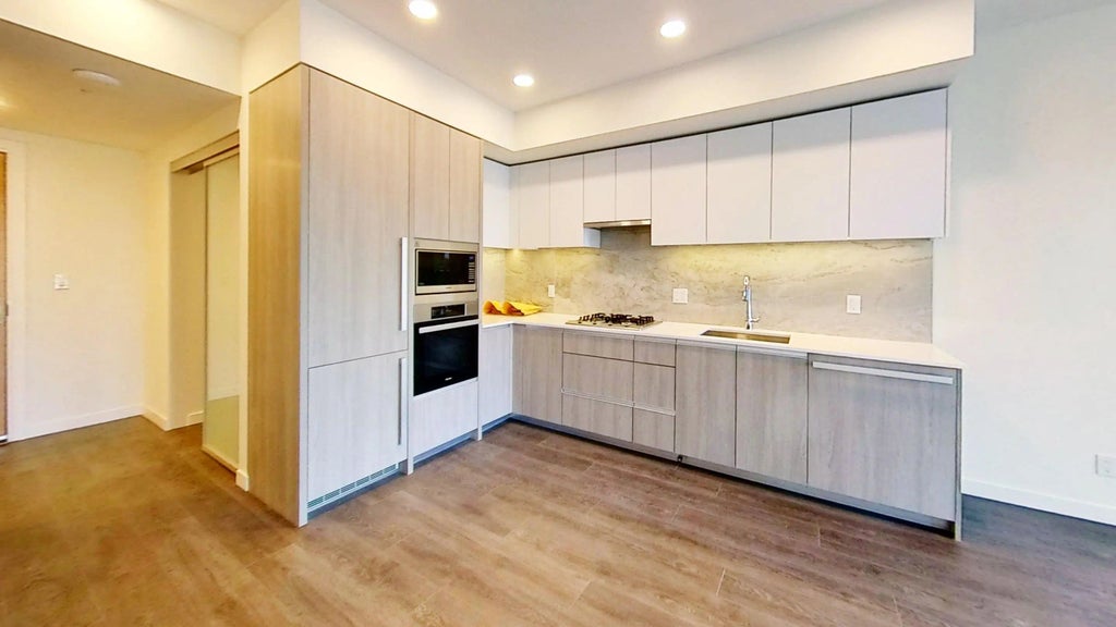 Welcome to One Park by Grand Long Holdings — a luxury residence in downtown Richmond featuring resort-style living and a 31,000 sq.ft. private park. This 1 bed + den, 1 bath (568 sq.ft. + 120 sq.ft. balcony) home offers A/C, high ceilings, Miele appliances, quartz counters, laminate flooring, and a spa-inspired bath. Includes 1 parking (EV ready) and balcony with city views. Amenities: fitness centre, yoga room, sauna, lounge, BBQ area, courtyard, and 24/7 security. Steps to SkyTrain, Richmond Centre, parks, and restaurants. No smoking/subletting. Tenant insurance & move-in fee required. To arrange a showing, please reply to this listing or call/text Bria at 778-949-4499.