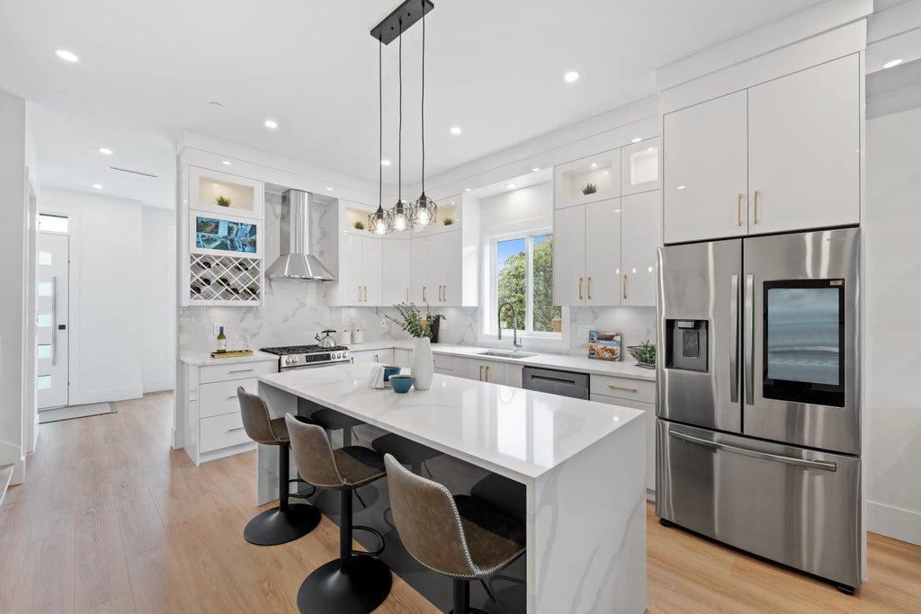 The best Duplex in town! Only 1 remaining brand new home in GlenBrooke North which has everything you need: high ceilings, privacy, ample sunshine, A/C, HRV, radiant floor heating & security cameras. Open kitchen features a 5 burner gas stove, waterfall kitchen island, s/s appliances, garburator for convenience, and a modern family room overlooking the open patio w/ BBQ gas connection and big backyard. The spacious living and dining areas have a 60" fireplace whilst the luxurious powder room feels like a 5 star hotel. Upstairs, there are 3 bedrooms with ensuites. Below has a potential 2 bedroom suite w/ bath & separate entry, a great mortgage helper or can be used as a flex space for storage, home office, or gym. Level 2 EV ready carport. Walking distance to all levels of school.