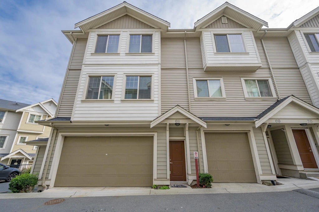 Fantastic townhouse just a short distance from the new sky train station. Does not back onto Fraser highway but does back onto a small park. Good location in "The heights". Open, great room concept on the main floor with a gourmet kitchen, Gas stove, Quartz counters and an island. Crown moulding throughout. Powder room on main floor. Upper features 2 full baths & 3 spacious bedrooms. Extra large (20x28) Side by side Double garage with 11' ceilings and backyard access. Lots of visitor parking very close to unit. Quality townhome in a great family neighborhood, close to amenities, parks, schools, shopping & transportation
