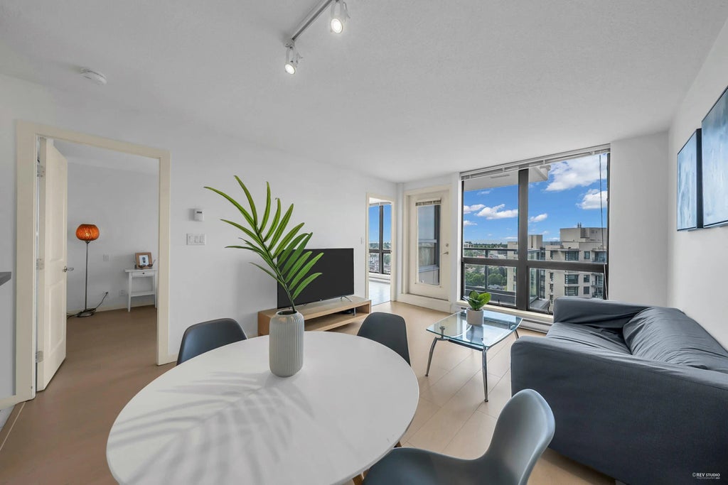 High floor renovated 1 Bed + Large Den in Latitude by Bosa! Newly renovated with beautiful laminate floors and fresh designer paint. Spacious floor plan with well-defined living and dining areas, large bedroom, and an expansive den that can be used as home office or nursery. Sweeping views of Fraser River, Downtown Vancouver and Northshore mountains. Superb location surrounded by parks, recreation and restaurants. Walking distance to Joyce Skytrain and Central Park. Minutes to Metrotown and Highway 1. Solid, well-managed strata with long-term owners and proactive caretaker. Low strata fees, healthy contingency fund and A/C installation permitted! One parking, one locker included. One pet allowed. Amazing value, OPEN HOUSE SAT 12-2pm.