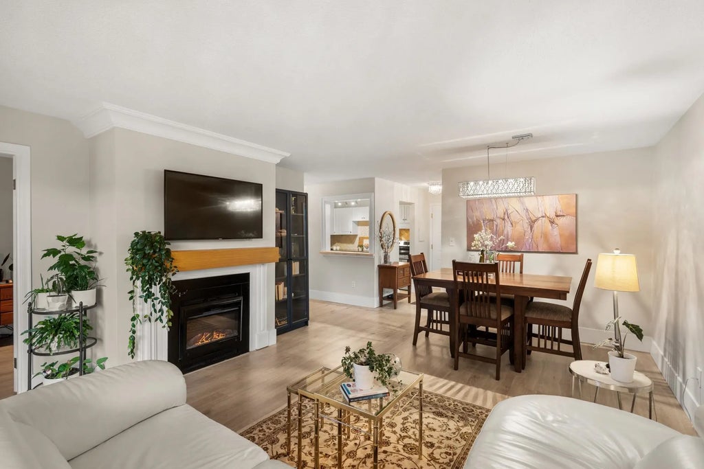 Bright and updated 2 bedroom, 1.5 bathroom home in the heart of sunny White Rock! Offering 1,033 sqft of comfortable living, this west-facing condo features ample storage, insuite laundry, covered raised outdoor space and tasteful updates throughout. Generous sized bedrooms including a primary large enough for a king size bed and a massive walk-in-closet. This a move-in ready home perfect for downsizers seeking peace of mind in a quiet well maintained proactive 55+ building. Located just steps to shopping, restaurants, and everyday amenities, this home combines comfort with an unbeatable walkable lifestyle. 1 Parking and 1 Storage Locker included. If you’re ready to embrace relaxed coastal living in White Rock, this the home for you!