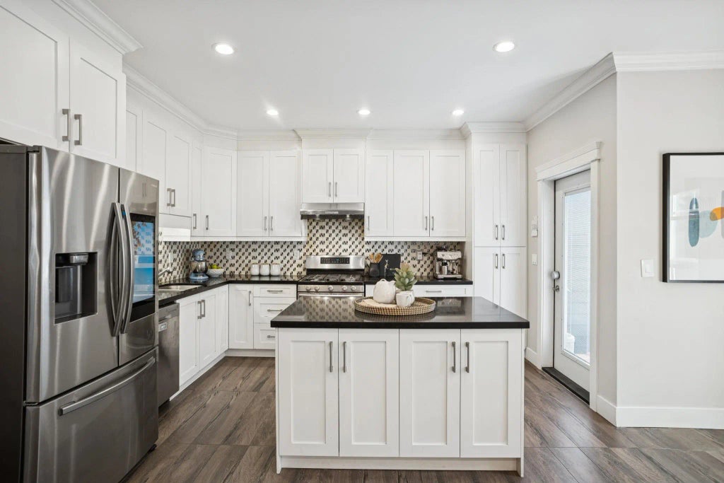 Discover this impeccably maintained 1/2 duplex that offers the space, comfort & feel of a detached home. Thoughtfully designed the spacious layout is perfect for families & those who love to entertain.The main level boasts an open-concept kitchen, eating area & family room-creating a warm, welcoming hub for daily living.You'll also find a separate formal living/dining area, ideal for hosting + a dedicated home office.Upstairs features four generously sized bedrooms, providing ample space for family & guests. The primary suite includes a walk-in closet & ensuite. Bonus-single car garage plus 1 open parking space. Conveniently located just minutes from schools, parks, T&T, Ikea & HWY 1 access—this home truly has it all, don't miss out! Showings by appointment only.