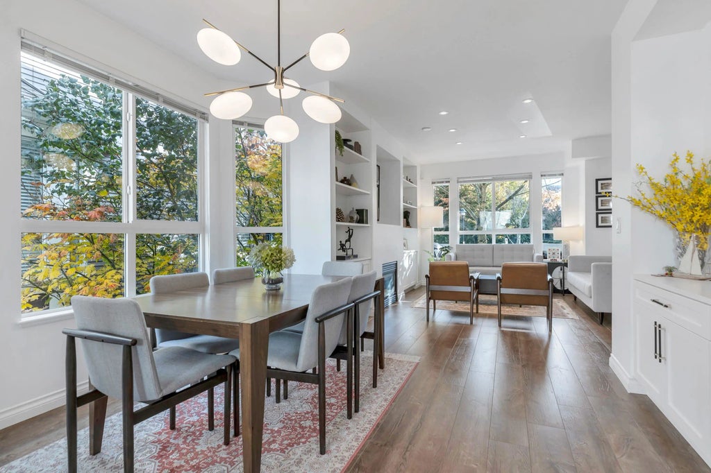 Welcome to Riverwind in Steveston where everyday life meets coastal charm. This rarely available duplex-style home offers nearly 1,900 sq ft of bright, south-facing air-con'd living framed by mature trees. The open main floor features pot lights, wide-plank flooring, and a modern white kitchen with quartz countertops, and ss appliances. Designer West Elm lighting & custom built-ins add both storage and style throughout. Upstairs you’ll find 3 spacious bedrooms, including a primary suite with a w/i closet and ensuite. Downstairs, a large den. Enjoy two decks and a private yard patio for morning coffee or evening gatherings after a stroll or run along the Dyke. Attached dbl garage with storage. Well-kept complex with clubhouse, gym, and playground. Pet friendly & easy to show. Call to view!