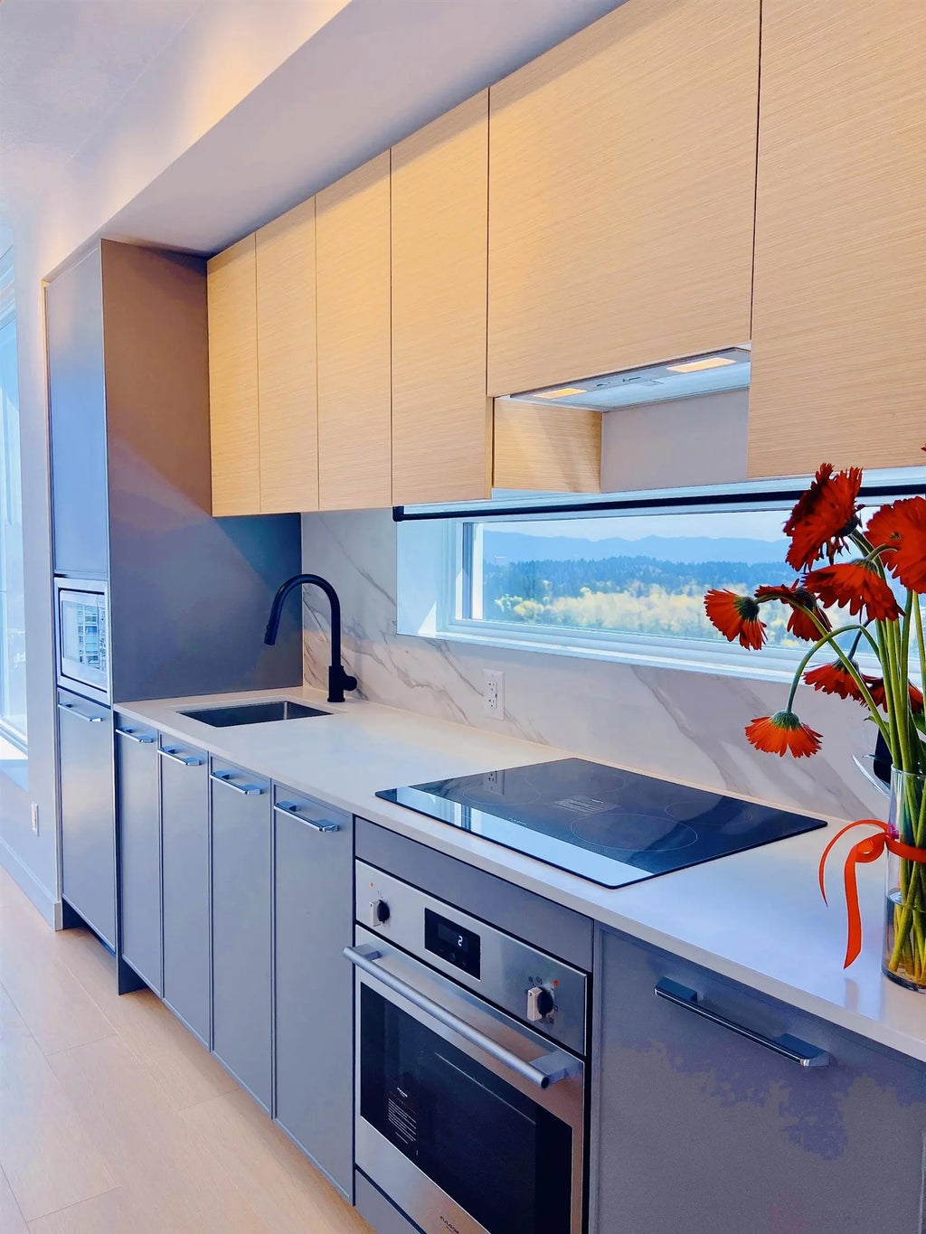 This brand-new SOUTHEAST FACING 30th-floor 2-bed 2-bath residence offers contemporary urban living with floor-to-ceiling windows that fill the home with natural light, high-end Fulgor Milano stainless steel Italian appliances, air conditioning, and a spacious balcony perfect for relaxing or entertaining. Enjoy an exceptional array of amenities, including rooftop lounges with BBQ areas, a fully equipped fitness hub, two theatre rooms, co-working and library spaces, children’s playgrounds. Unmatched location—just steps from King George SkyTrain Station, Central City Shopping Centre, Save-On-Foods, T&T Supermarket, Rexall, Starbucks, and both SFU and Kwantlen Polytechnic University campuses. No pets! Call/text 778-896-7151 to make the appointment today!