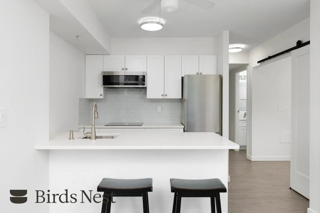 Welcome home to Lord Stanley, located in the heart of Downtown's West End. This renovated condo features an open-concept layout with laminate flooring, soaring over-height ceilings, and floor-to-ceiling windows that flood the home with natural light and fresh air. From every angle, enjoy panoramic views of the city skyline and harbour. The contemporary kitchen is thoughtfully designed with custom cabinetry, quartz countertops, and premium stainless steel appliances—perfect for both everyday living and evenings spent cooking at home. Residents of Lord Stanley enjoy access to premium amenities, including concierge service, a sauna/steam room, and a fitness centre. For more information or to book a showing, please visit birdsnestproperties.ca