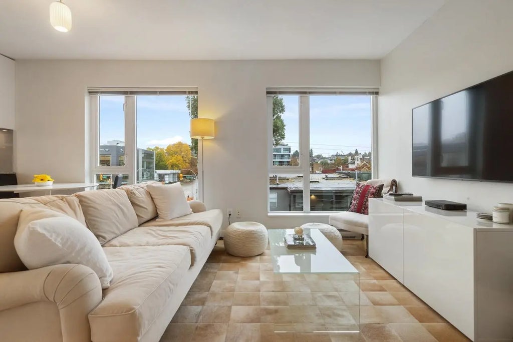 Welcome to KORE—a stylish boutique concrete building in the heart of Kitsilano! This bright, south-facing air-Conditioned 1-bedroom is all about location and lifestyle - just steps from amazing cafés, shops, restaurants, Kits Beach, and Granville Island (and only 5 minutes to downtown!). Inside this beautiful corner unit, you’ll find an open concept layout with engineered hardwood floors, floor-to-ceiling windows, and sleek stainless steel appliances in a chill West Coast style. The flex room is perfect for a home office or extra storage, and the private patio is perfect for relaxing or hosting Summer BBQ's. Enjoy a gym, common patio & garden area, and a secure, pet-friendly building—plus 1 parking included. Urban convenience meets laid-back coastal living—your Kits dream starts here!