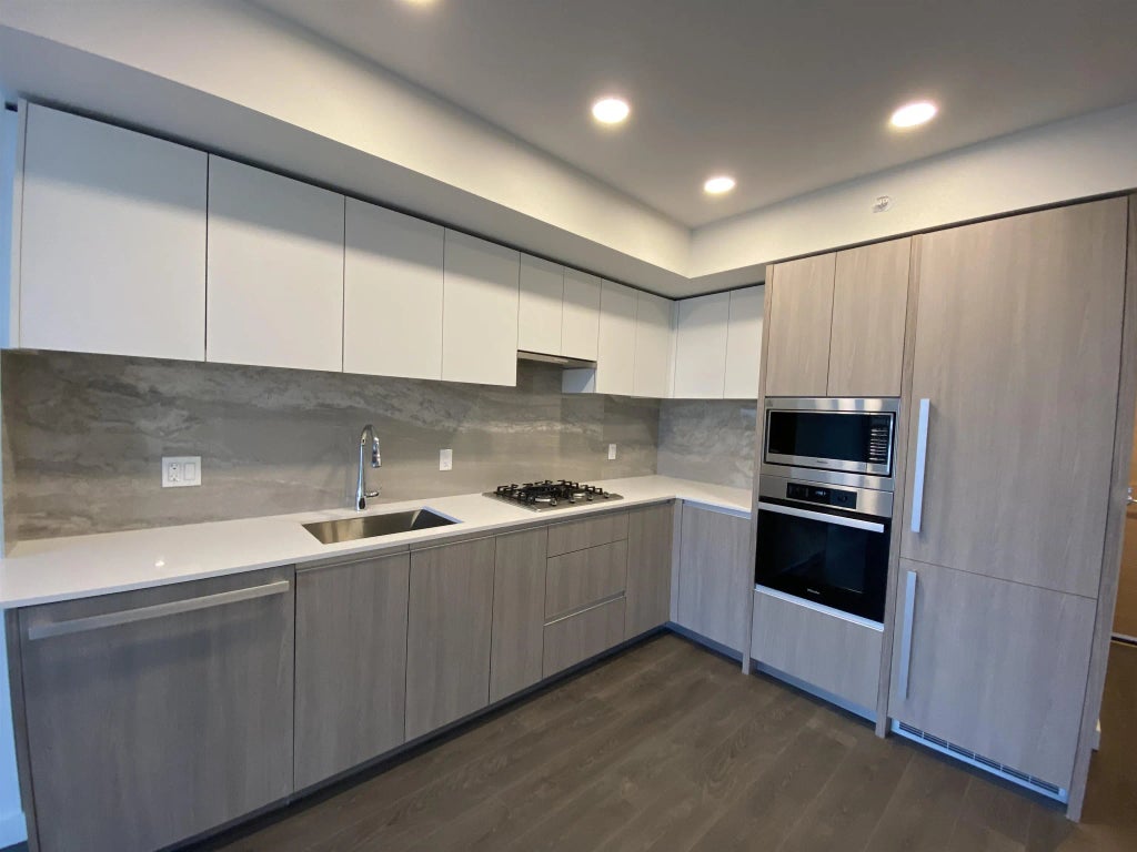 New 1bed+1den 1bath air-conditioned apartment Just across the street from Richmond Centre. high ceiling, open floor plan, extensive hardwood flooring thru out, and high-end cabinetry with Miele appliances. 5mins walk from Richmond–Brighouse Skytrain station Steps away to Minoru Park, Richmond Secondary School, Richmond Public Library Close to banks, restaurants, cafés and much more.