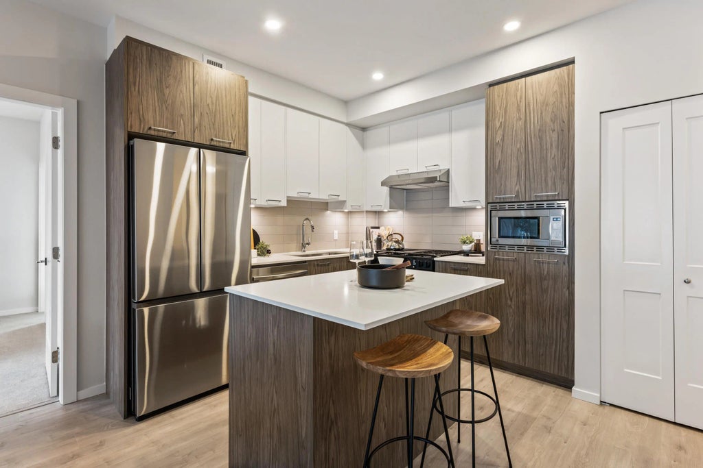 Move in Ready! Welcome to Southaven. A refined Modern Farmhouse inspired condo community situated in Elgin, proudly built by award winning Park Ridge Homes. This two bedroom two bath CORNER PENTHOUSE home features a refined interior w/ open concept floor plan configured to suit modern living. Finishes include soft close, flat panel cabinetry, quartz counters + undermount sinks, Samsung SS appliances including 5 burner gas range, oversized windows and A/C! Full fitness centre + billiard room. Steps from Choices Market, Starbucks & close to great restaurants, fabulous shops at Morgan Crossing & Grandview Corners. Quick access to the park & ride, Hwy 99. Open by appointment.