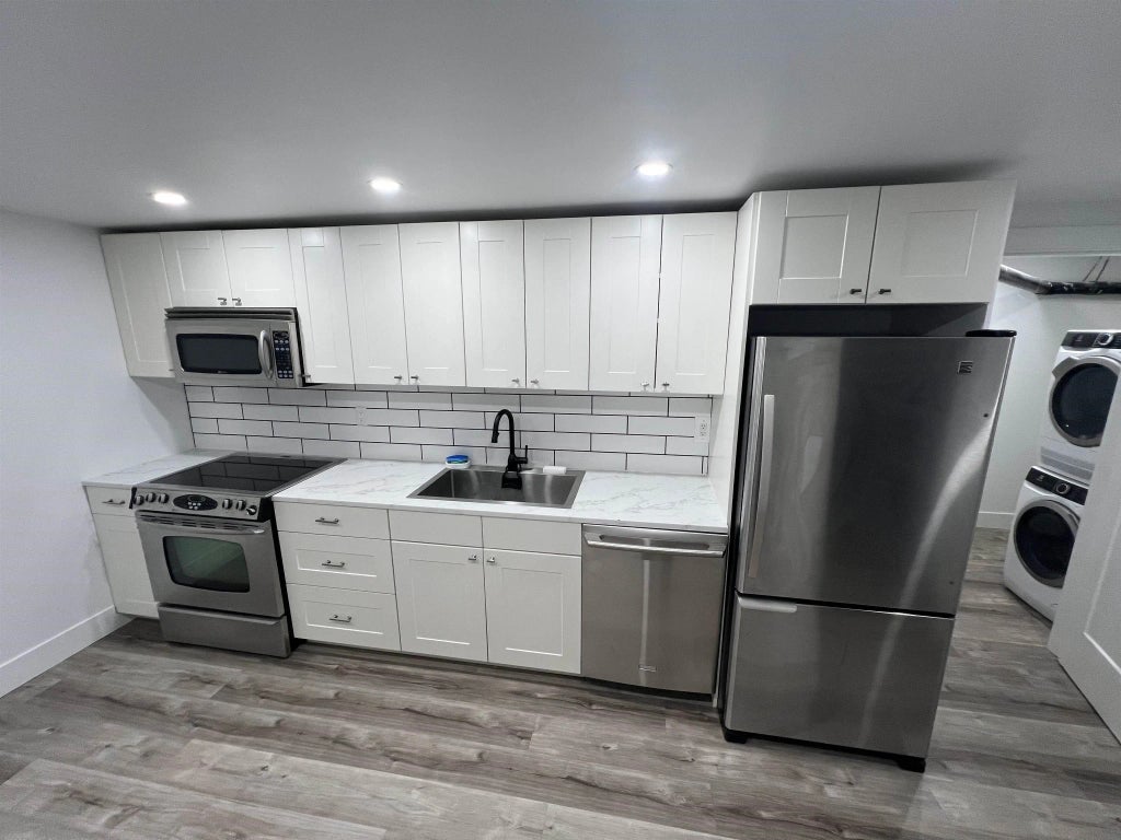 Beautifully updated 3-bedroom basement suite offering over 1,100 sqft of bright, open-concept living space. This full suite features a modern kitchen, spacious living area, and in-suite laundry for convenience. Enjoy your own private entrance and a personal patio perfect for relaxing outdoors. Please note, two of the bedrooms do not have windows. Ideally located just minutes from town with easy access to transit, shopping, and all amenities — a perfect place to call home!